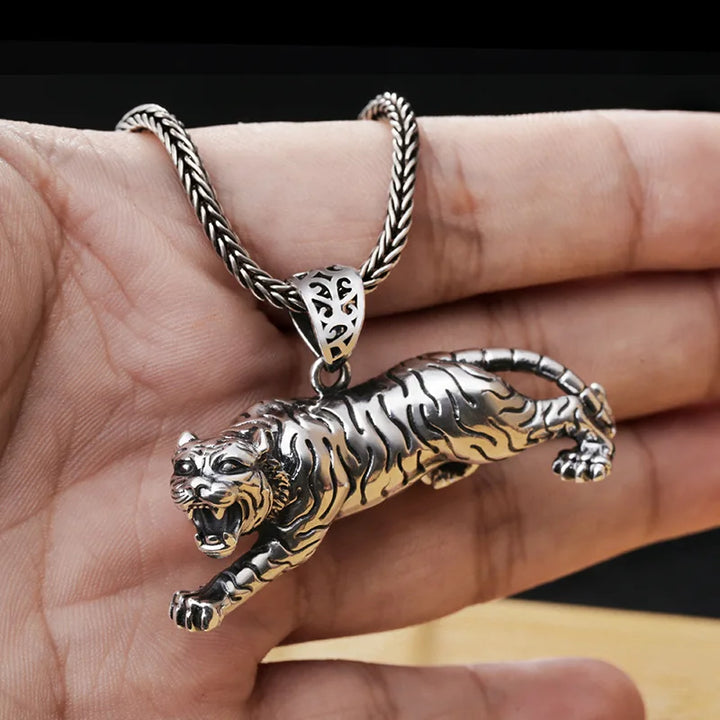 Sensational Stainless Steel Tiger Necklace. An elegant and striking piece for women who adore classic, tiger-themed jewelry! Perfect for special occasions.