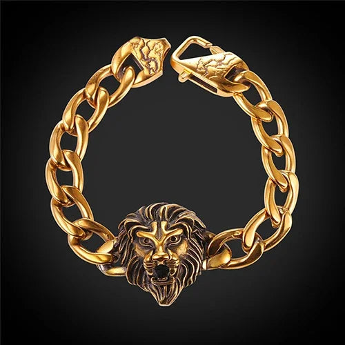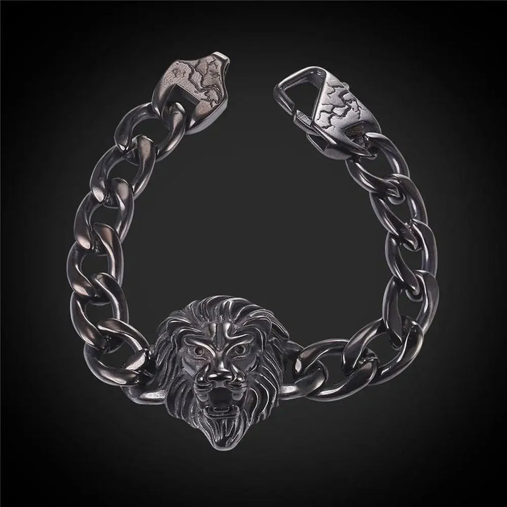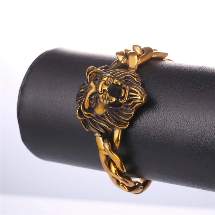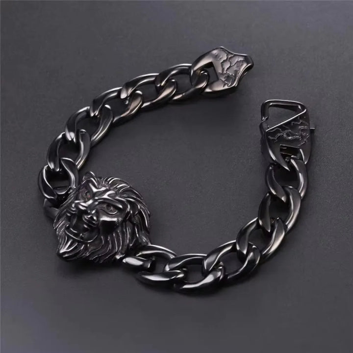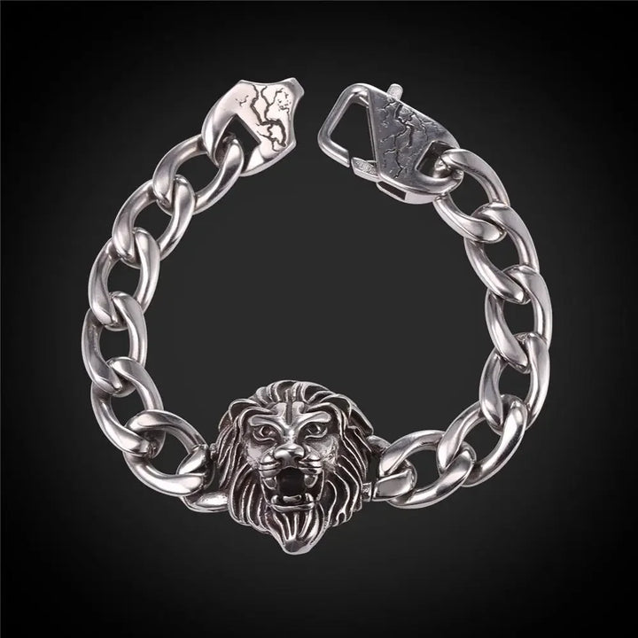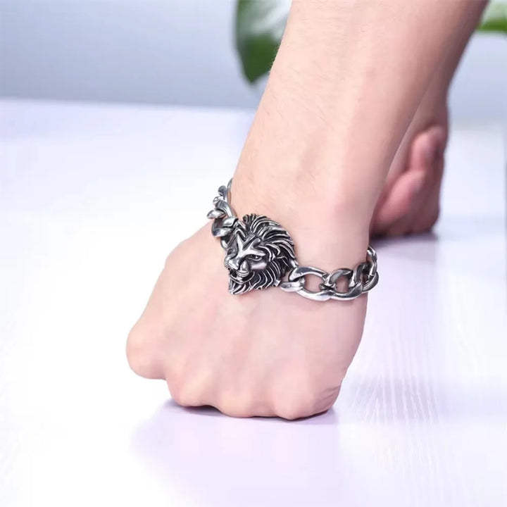 Stainless Steel Chunky Lion Bracelet. A bold and rugged accessory for men who love punk, lion-inspired jewelry! Suitable for any occasion.